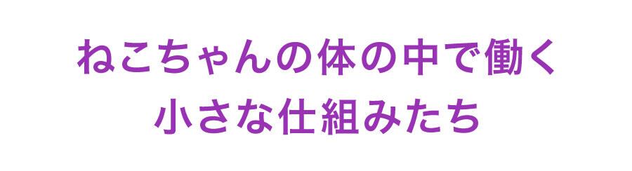 ねこちゃんの体の中には、さまざまな小さな仕組みが関わり合いながら、日々のコンディションを保つために働いています。